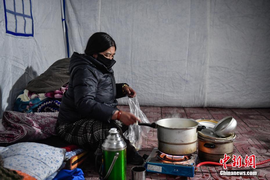 1月7日9時5分,西藏自治區(qū)日喀則市定日縣措果鄉(xiāng)附近(東經87.45度,北緯28.50度)發(fā)生6.8級地震。日喀則市官方介紹,經初步排查,截至當日15時,地震共造成95人遇難,130人受傷,房屋損毀正在統(tǒng)計中。圖為日喀則拉孜縣境內的村民在臨時搭建的帳篷里做飯。中新社記者 貢嘎來松 攝