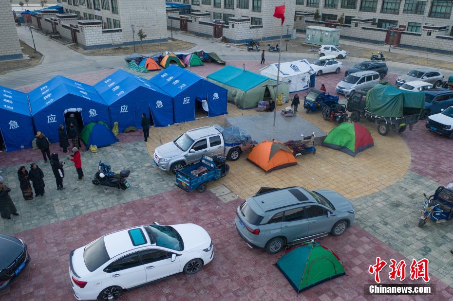 1月7日9時5分,西藏自治區(qū)日喀則市定日縣措果鄉(xiāng)附近(東經87.45度,北緯28.50度)發(fā)生6.8級地震。日喀則市官方介紹,經初步排查,截至當日15時,地震共造成95人遇難,130人受傷,房屋損毀正在統(tǒng)計中。圖為日喀則拉孜縣境內的村民臨時搭建的帳篷。(無人機照片)中新社記者 貢嘎來松 攝