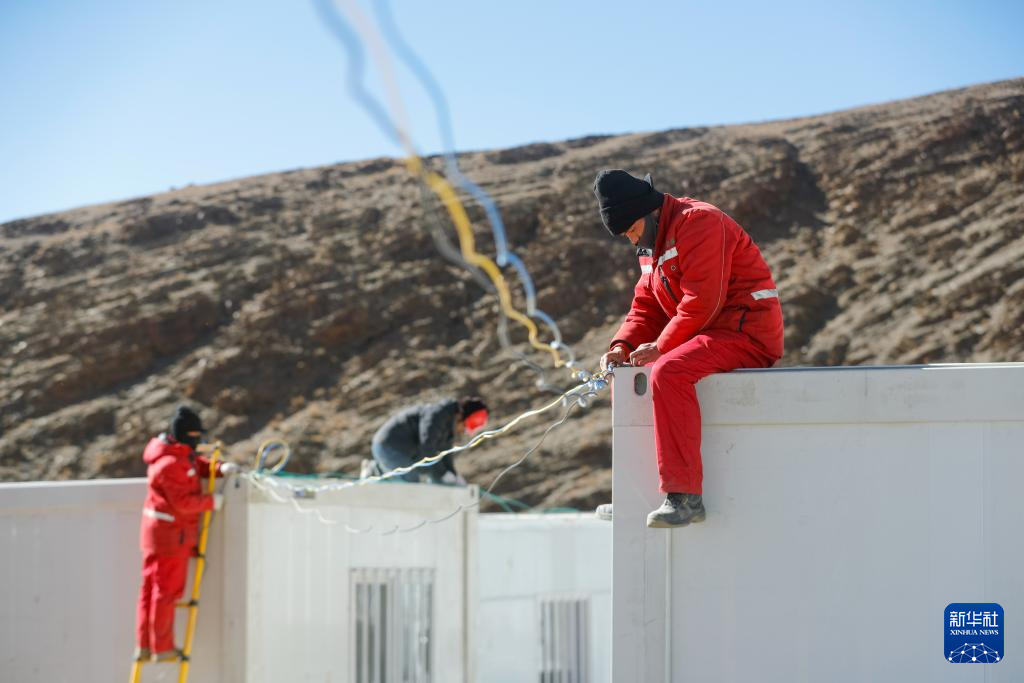 1月10日,在定日縣長所鄉(xiāng)古榮村,工人在為板房搭設電路。新華社記者 沈伯韓 攝