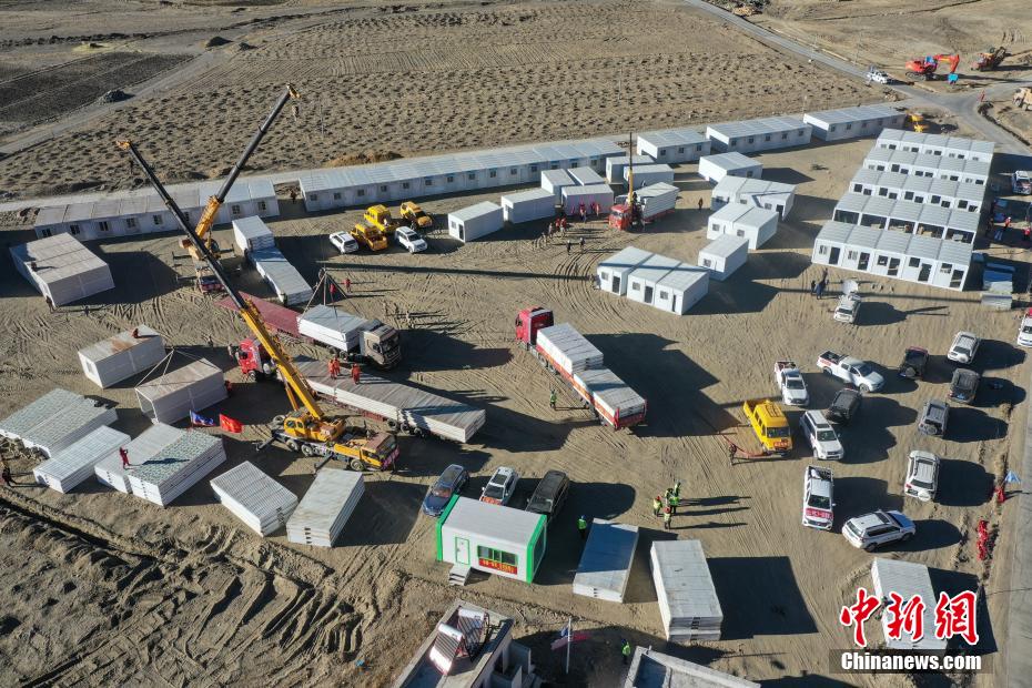 1月7日9時5分,西藏自治區(qū)日喀則市定日縣發(fā)生6.8級地震,震源深度10公里。災情就是命令,當?shù)卣推髽I(yè)迅速行動,目前災區(qū)多個鄉(xiāng)村都在加緊進行保溫板房建設,只為讓受災民眾早日擁有“安心巢”。據(jù)了解,每間板房有18平方米,可容納4到5人,板房設有折疊床、桌子、爐子等,并保障民眾用電需求,讓他們更好地度過冬天。圖為1月10日,西藏日喀則市定日縣長所鄉(xiāng)森嘎村保溫板房建設現(xiàn)場。(無人機照片)中新社記者 貢嘎來松 攝