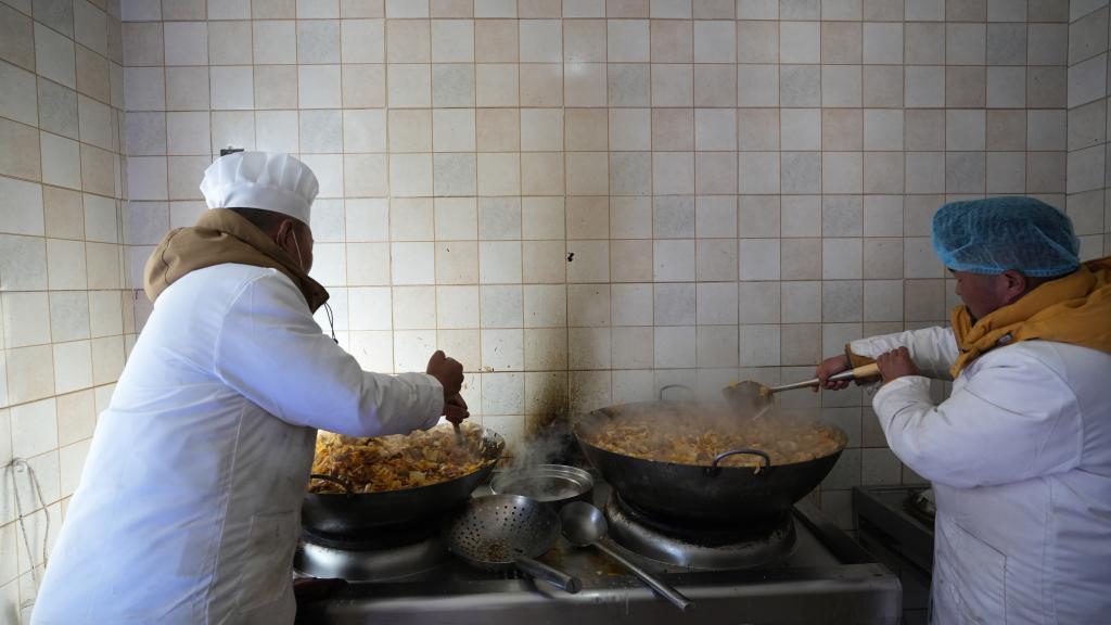 “前天午飯是蘿卜燉排骨,昨天是土豆紅燒肉。”扎西說,每天菜品都不重樣。