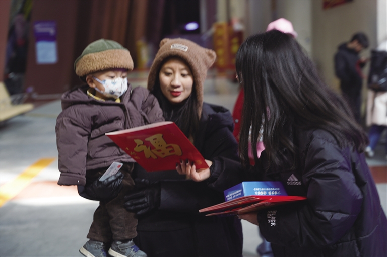 1月14日15時(shí)許,拉薩火車站候車大廳人頭攢動,熱鬧非凡。回鄉(xiāng)的人們臉上都洋溢著幸福的笑容,期待著歸家的旅途。“你好,送你們一副對聯(lián),祝你們新春快樂?!焙蜍噺d內(nèi),自治區(qū)總工會的工作人員將一副副喜慶的對聯(lián)送給踏進(jìn)火車站的人們,為他們送上新春的祝福和溫暖。