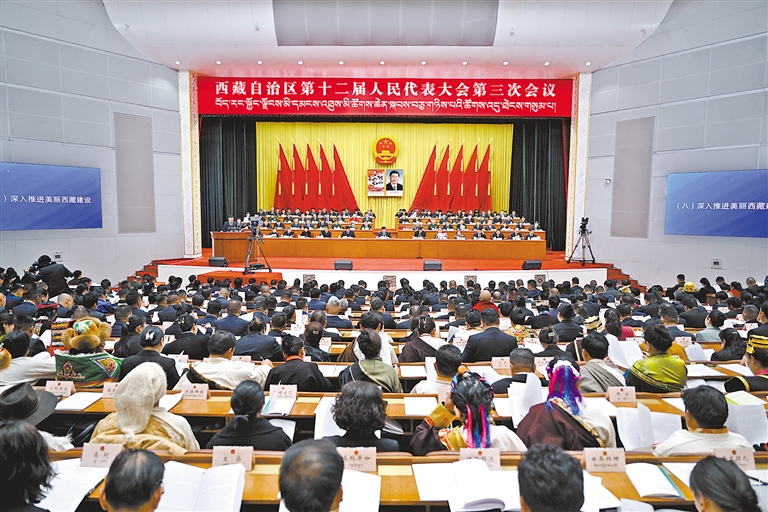 自治區(qū)十二屆人大三次會議開幕會現(xiàn)場。西藏日報記者 旦增西旦 攝