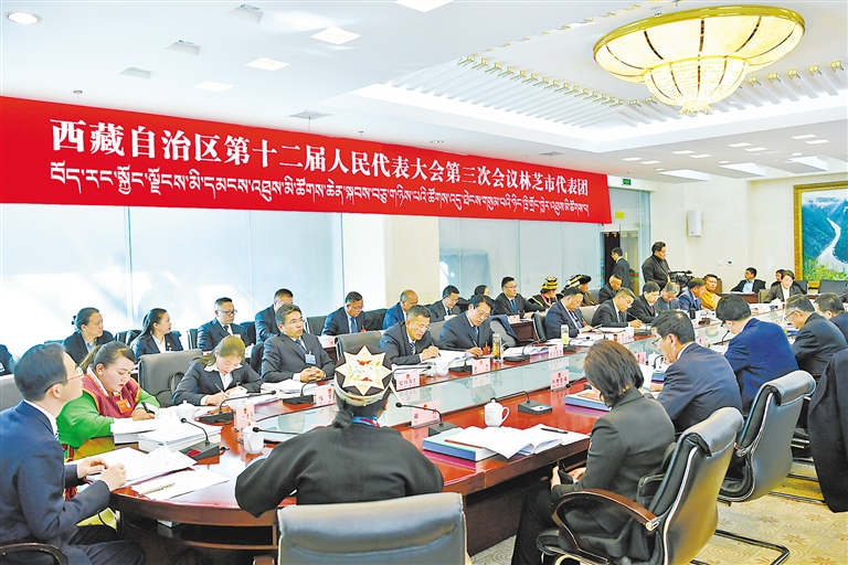 林芝市代表團審議政府工作報告。西藏日報記者 次仁平措 攝