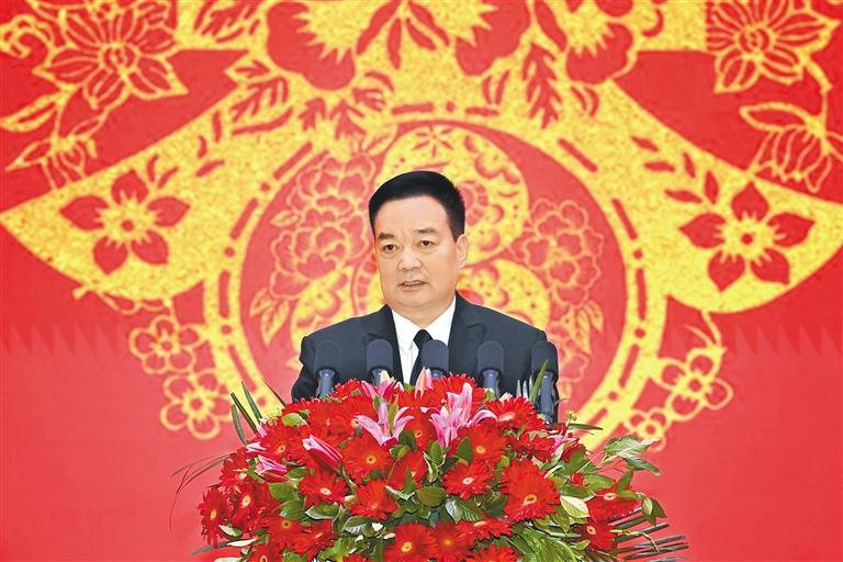 王君正在致辭中說,2024年是西藏經(jīng)濟(jì)社會(huì)發(fā)展歷程中不平凡的一年。自治區(qū)黨委團(tuán)結(jié)帶領(lǐng)全區(qū)各族干部群眾,深入貫徹落實(shí)習(xí)近平總書記關(guān)于西藏工作的重要指示和新時(shí)代黨的治藏方略,緊緊圍繞“四件大事”落實(shí),努力推動(dòng)長(zhǎng)治久安和高質(zhì)量發(fā)展取得新成效。牢固樹立總體國家安全觀,堅(jiān)持警鐘長(zhǎng)鳴、警惕常在,把維穩(wěn)工作做在日常、做到經(jīng)常、落實(shí)在基層,加快推進(jìn)依法治藏,建設(shè)更高水平的法治西藏,確保社會(huì)大局持續(xù)和諧穩(wěn)定,長(zhǎng)治久安的基礎(chǔ)更加牢固。完整準(zhǔn)確全面貫徹新發(fā)展理念,落實(shí)“三個(gè)賦予一個(gè)有利于”總要求,傳統(tǒng)產(chǎn)業(yè)提質(zhì)增效,新興產(chǎn)業(yè)加快發(fā)展,營(yíng)商環(huán)境持續(xù)優(yōu)化,努力推動(dòng)經(jīng)濟(jì)社會(huì)高質(zhì)量發(fā)展,確保經(jīng)濟(jì)發(fā)展當(dāng)前有活力、未來有潛力。(下轉(zhuǎn)第二版)(緊接第一版) 堅(jiān)持以人民為中心的發(fā)展思想,持續(xù)改善各族群眾的生產(chǎn)生活條件,改進(jìn)工作方式方法,采取針對(duì)性措施解決好群眾關(guān)心的醫(yī)療、教育、就業(yè)等實(shí)際問題,西藏班招生規(guī)模不斷擴(kuò)大,全區(qū)城鄉(xiāng)面貌發(fā)生深刻變化,各族群眾的獲得感幸福感安全感持續(xù)增強(qiáng)。持之以恒推進(jìn)全面從嚴(yán)治黨,堅(jiān)決貫徹黨中央關(guān)于全面從嚴(yán)治黨的戰(zhàn)略部署,牢固樹立憑能力用干部、以實(shí)績(jī)論英雄的鮮明用人導(dǎo)向,努力建設(shè)一支忠誠干凈擔(dān)當(dāng)?shù)母刹筷?duì)伍,黨的戰(zhàn)斗力、凝聚力、領(lǐng)導(dǎo)力、號(hào)召力不斷增強(qiáng)。日喀則市定日縣地震發(fā)生后,自治區(qū)黨委認(rèn)真貫徹落實(shí)習(xí)近平總書記重要指示精神和中共中央政治局常務(wù)委員會(huì)會(huì)議精神,按照黨中央、國務(wù)院決策部署,全區(qū)黨政軍警民齊心協(xié)力、協(xié)調(diào)聯(lián)動(dòng),廣大黨員干部勇于擔(dān)當(dāng)、沖鋒在前,科學(xué)救治受傷群眾,全力搶修基礎(chǔ)設(shè)施,妥善安置受災(zāi)群眾,確保了人民群眾生命財(cái)產(chǎn)安全,抗震救災(zāi)工作取得階段性勝利。西藏各項(xiàng)事業(yè)的發(fā)展進(jìn)步,是以習(xí)近平同志為核心的黨中央英明領(lǐng)導(dǎo)的結(jié)果,是習(xí)近平新時(shí)代中國特色社會(huì)主義思想科學(xué)指引的結(jié)果,是全區(qū)各族人民努力奮斗的結(jié)果。