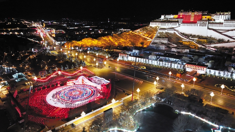 “視覺效果非常震撼!以布達拉宮為舞臺背景的西藏拉薩分會場,盡顯雄偉壯觀?!蔽鞑乩_分會場負責人郝婧表示。