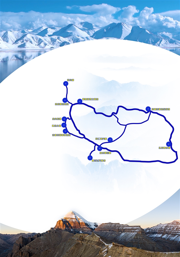 岡底斯山脈主峰岡仁波齊,圣潔莊嚴(yán),其獨(dú)特的金字塔形狀與周圍連綿的雪山交相輝映,勾勒出一幅雄渾壯闊、氣勢恢宏的冰雪畫卷。而發(fā)源于岡底斯山脈的獅泉河、象泉河、孔雀河、馬泉河四大河流,如同靈動(dòng)的畫筆在阿里高原上繪就了一幅幅絕美山河勝景。