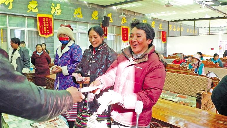 冬日的阿里,寒氣襲人,然而在獅泉河鎮(zhèn)加木村的黨員活動室里,卻是暖意融融、熱鬧非凡。原來,這里正在召開村里的年終分紅大會。村合作社經(jīng)理洛桑達(dá)瓦首先向群眾介紹了合作社2024年的運營及收益情況,隨后按村民入股多少逐戶發(fā)放分紅款。看著手里的“真金白銀”,村民們個個笑得合不攏嘴。