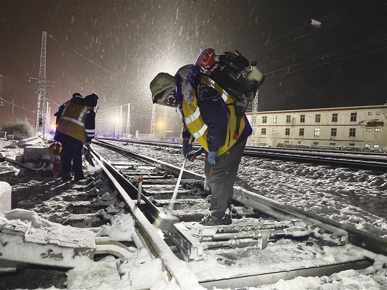 此時(shí),他們?nèi)矶冀Y(jié)滿了冰霜,衣帽也被雪水浸濕,但大家顧不上這些,又繼續(xù)投入到線路檢查工作中,全力守護(hù)高原鐵路的安全暢通。這群青藏鐵路上的“90后”,在風(fēng)雪夜里化身最美“逆行者”,迎風(fēng)戰(zhàn)雪守護(hù)著“天路”的信號(hào)設(shè)備。春運(yùn)期間,他們始終堅(jiān)守崗位,守護(hù)著南來北往旅客的旅途平安。