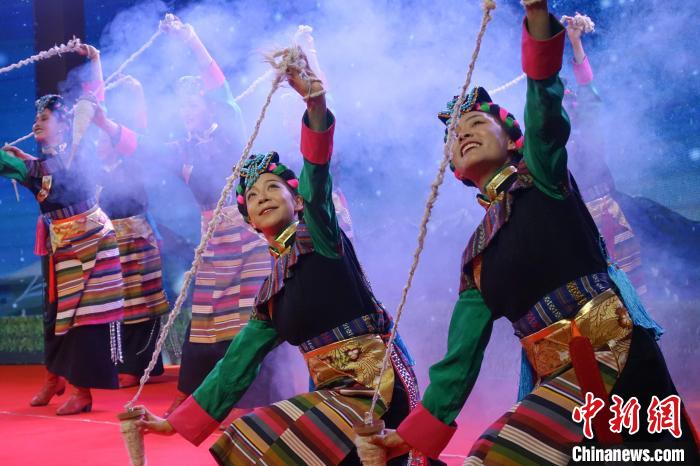 2月18日晚,中國駐尼泊爾使館在加德滿都舉辦藏歷木蛇新年招待會。圖為中國西藏山南市藝術團表演舞蹈《織夢》。中新社記者 崔楠 攝