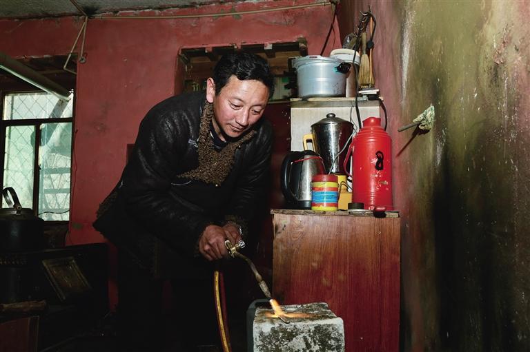43歲的次央多吉是墨竹工卡縣級非物質(zhì)文化遺產(chǎn)阿吉祖玉傳承人。這份傳承的使命,自他的祖輩起便已延續(xù)。在他的記憶中,長輩們熟練掌握這項(xiàng)非遺技藝的身影,深深烙印在他的心中?!鞍⒓嬗袷亲嫦葌飨聛淼臇|西,不能丟。”抱著這樣堅(jiān)定的想法,次央多吉在年少時(shí)便立下決心,要將這門技藝傳承下去,并不斷發(fā)揚(yáng)光大。