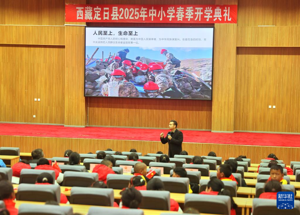 張艾平授課的主題是《從定日地震救援看中國速度》,他帶著學生回顧震后八方支援的動人細節(jié)?!氨敬伍_學第一課以生動活潑的形式,通過一個個鮮活的案例,講出了中國精神、中國力量和中國溫度,增強了學生的家國情懷?!蔽鞑刈灾螀^(qū)教育廳思政處副處長韓利君說。
