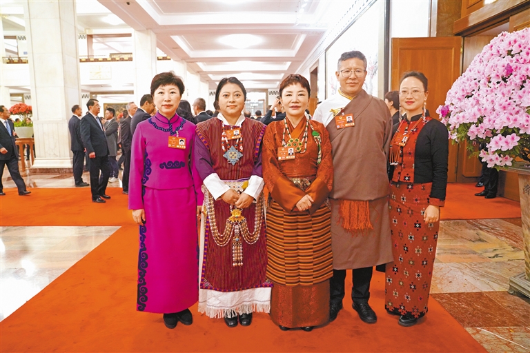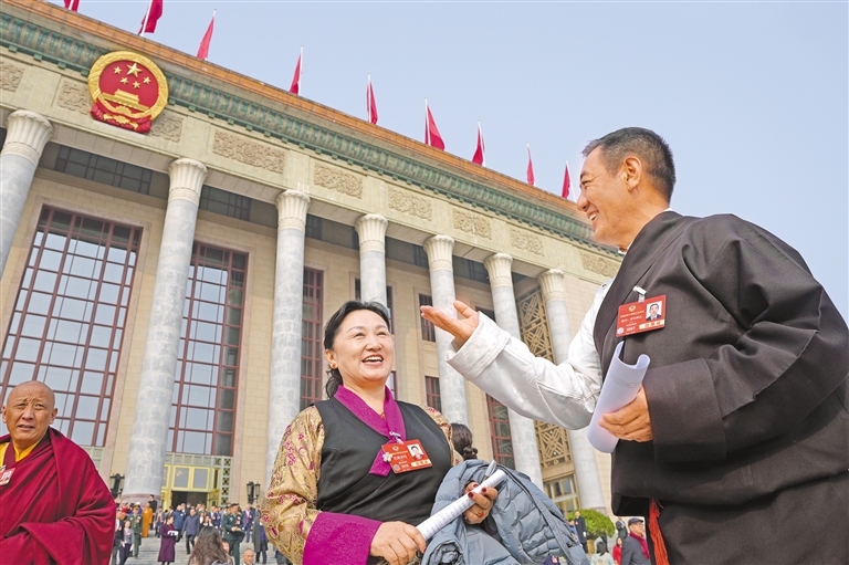 圖為住藏全國政協(xié)委員等參會人員在人民大會堂前合影留念。記者 旦增平措 次旦央吉 攝