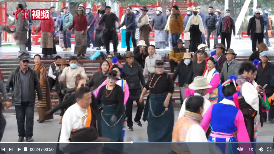 3月的西藏拉薩,處處可見春的氣息。3月14日,在藥王山觀景臺游客們拍攝布達拉宮。而在布達拉宮腳下的宗角祿康公園,市民散步、集體跳鍋莊舞各得其樂。(李林 制作 岳子巖)