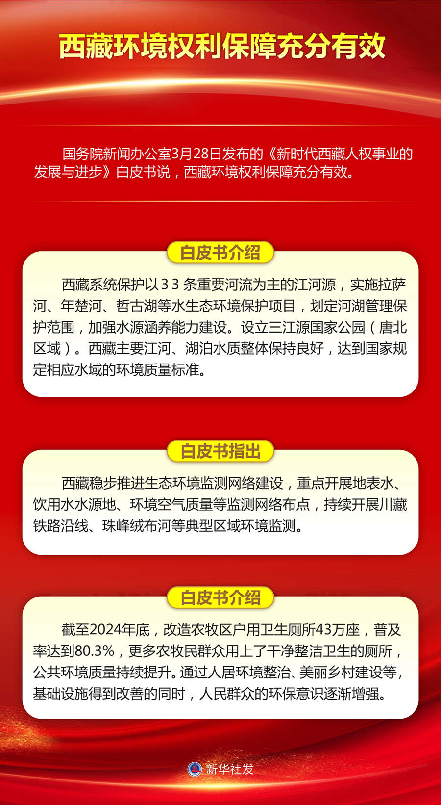 國務(wù)院新聞辦公室28日發(fā)布的《新時(shí)代西藏人權(quán)事業(yè)的發(fā)展與進(jìn)步》白皮書說,西藏環(huán)境權(quán)利保障充分有效。