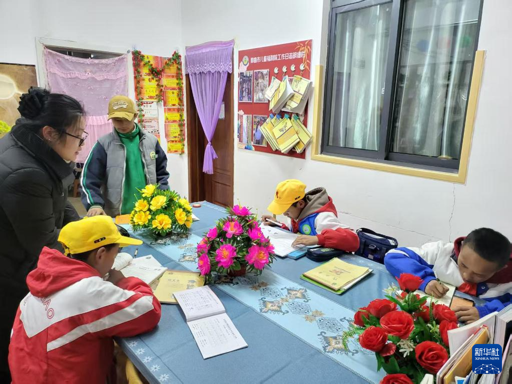 2025年3月17日,周雪在兒童福利院與放學回去的孩子談心,了解他們在學校的情況。(受訪者供圖)