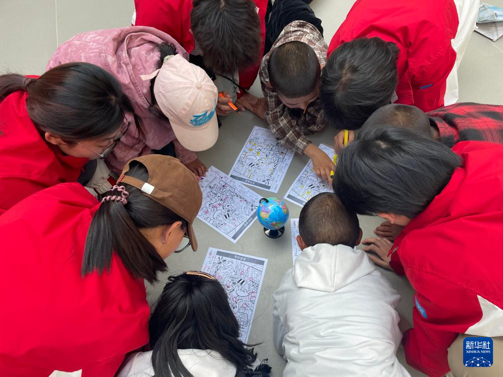 2024年8月31日,張晶晶帶領西部計劃志愿者到兒童福利院和孩子們做益智活動。(受訪者供圖)