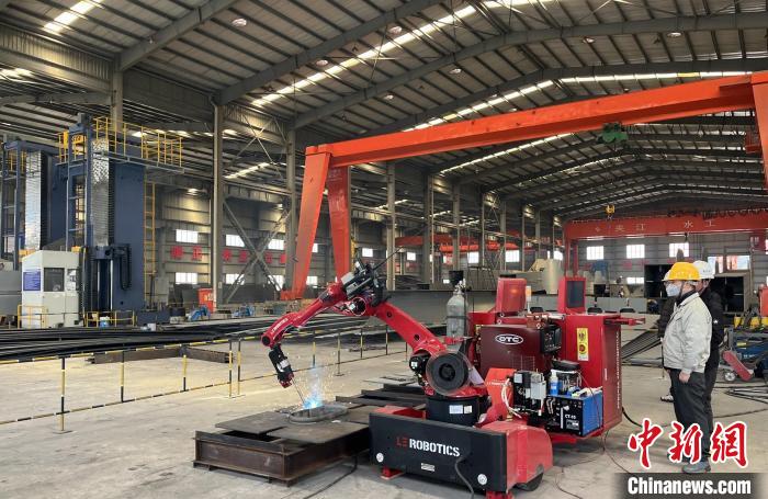 圖為林芝金屬結(jié)構(gòu)廠首臺全自動焊接機器人。林芝金屬結(jié)構(gòu)廠 供圖