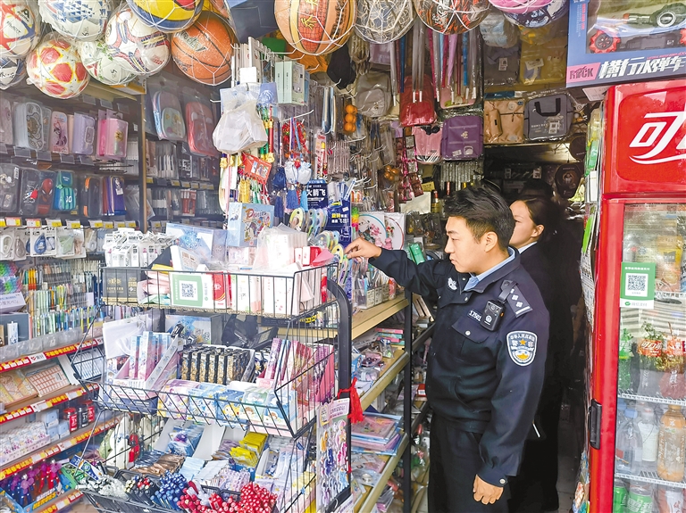 山南檢察司法警察協(xié)助檢察官進(jìn)行整頓校園周邊環(huán)境執(zhí)法。