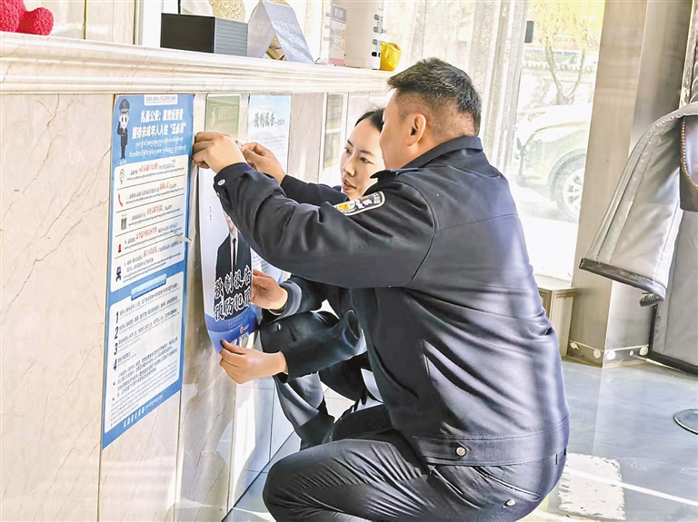 山南檢察司法警察協(xié)助檢察官對(duì)校園周邊賓館登記入住情況進(jìn)行執(zhí)法檢查,清理校園周邊環(huán)境。圖片均由山南市檢察院提供