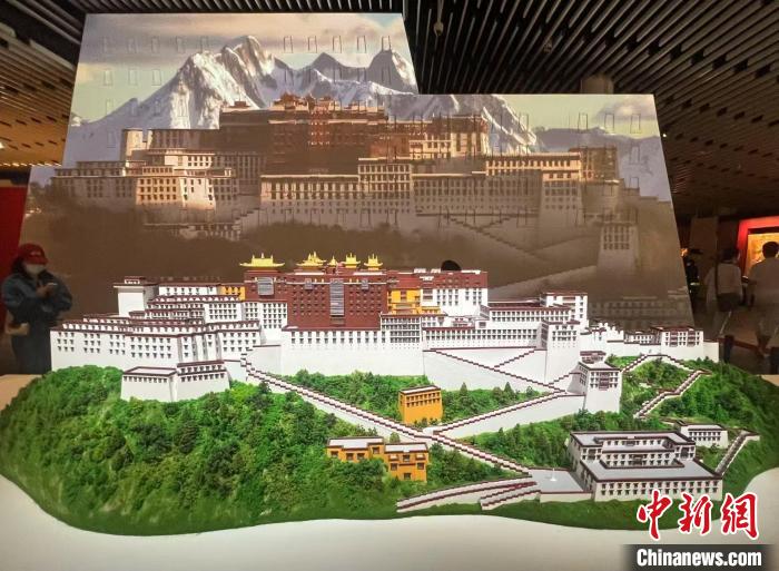 圖為展廳入口處呈現(xiàn)的按比例縮小的布達(dá)拉宮模型。記者 岳依桐 攝