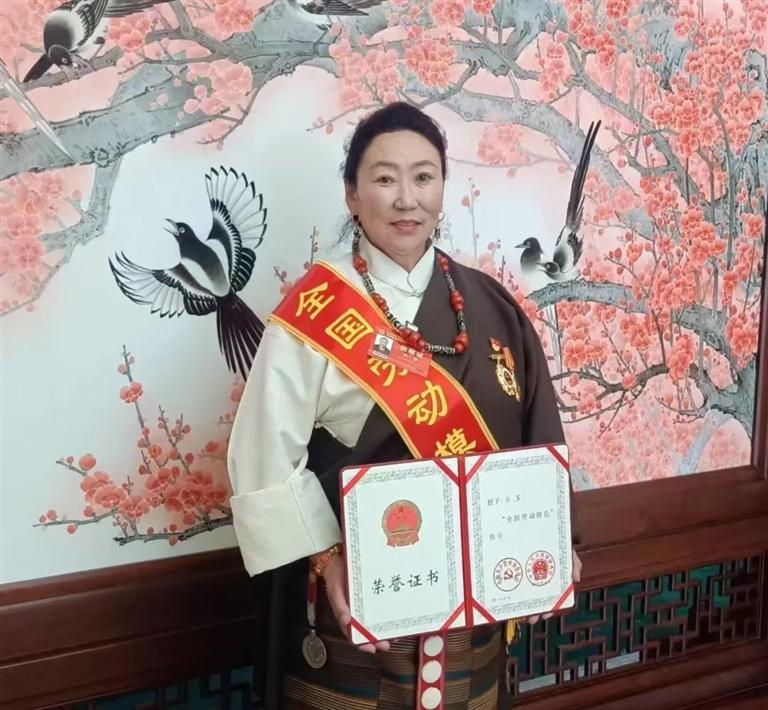 圖為米多展示“全國勞動模范”榮譽(yù)證書(資料圖片)。