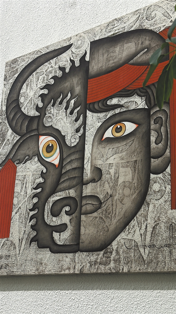 昂桑新作《十二生肖》中,藏式生肖圖騰與賽博朋克齒輪咬合,唐卡“三白法”渲染機(jī)械金屬光澤?!坝腥苏f我在解構(gòu)傳統(tǒng),實(shí)則在編織文化‘經(jīng)緯線’。”他指著畫布說,“傳統(tǒng)不是凝固的酥油花,而是奔涌的河,接納現(xiàn)代支流,卻不忘雪山來處。”