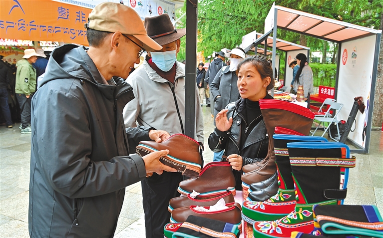 近日,“雪域古城·圣地拉薩”文化旅游節(jié)非遺主題活動在拉薩宗角祿康公園內(nèi)開展,現(xiàn)場人潮涌動。非遺藏戲演員身著華服,以高亢唱腔演繹《朗薩雯蚌》選段,觀眾圍坐沉浸于雪域藝術(shù)魅力。非遺展銷區(qū)陳列著木雕、牛皮制品等傳統(tǒng)手工藝品?;顒尤嬲宫F(xiàn)了非遺保護傳承與利用的新進展和新成效。