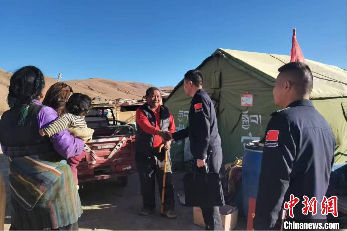 圖為西藏出入境邊防檢查總站第十四批駐村工作隊(duì)走訪(fǎng)民眾。徐廣立 攝