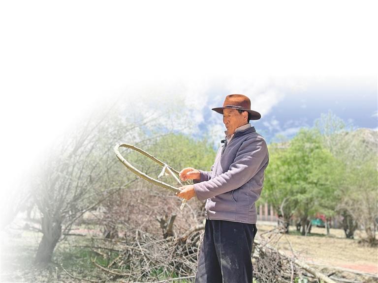 次仁正在制作工藝牛皮船。記者 曉勇 攝