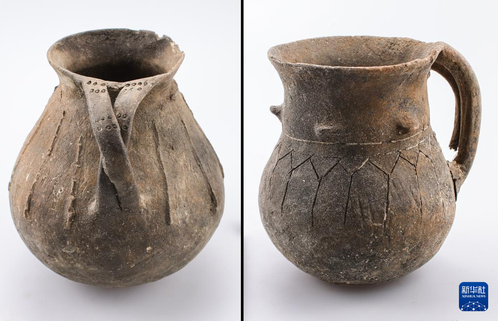 這是瑪不錯(cuò)遺址出土的第二期典型陶器(拼版照片)。新華社發(fā)(西藏自治區(qū)文物保護(hù)研究所供圖)
