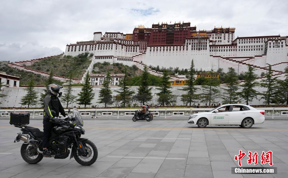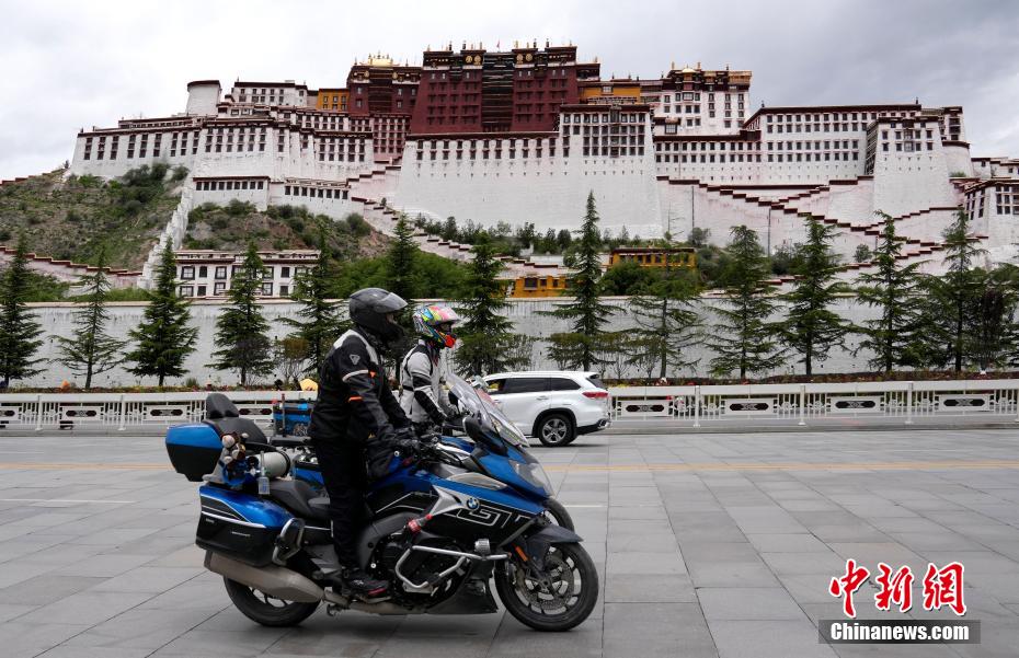 7月3日,摩旅愛(ài)好者自駕經(jīng)過(guò)布達(dá)拉宮。隨著暑期旅游旺季的到來(lái),進(jìn)藏自駕游成為旅行愛(ài)好者的熱門選擇。房車愛(ài)好者、摩旅愛(ài)好者選擇自駕抵達(dá)拉薩,專程途經(jīng)布達(dá)拉宮打卡。中新社記者 李林 攝