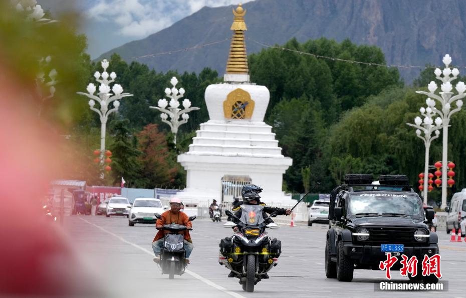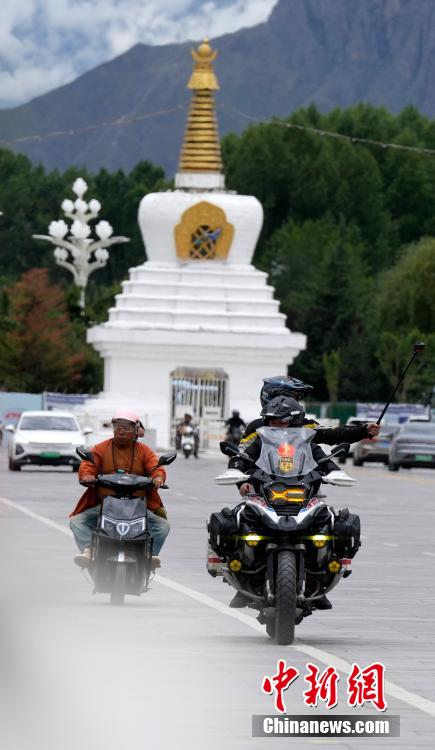 7月3日,摩旅愛(ài)好者行駛在拉薩街頭。隨著暑期旅游旺季的到來(lái),進(jìn)藏自駕游成為旅行愛(ài)好者的熱門選擇。房車愛(ài)好者、摩旅愛(ài)好者選擇自駕抵達(dá)拉薩,專程途經(jīng)布達(dá)拉宮打卡。中新社記者 李林 攝