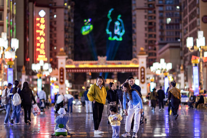 市民在昌都市茶馬廣場納涼(6月21日攝)。新華社記者 姜帆 攝