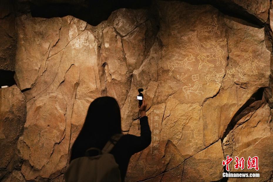 7月15日,在位于西藏拉薩的西藏博物館,觀眾拍攝復(fù)原的阿里日姆棟巖畫(huà)。據(jù)了解,西藏博物館設(shè)有基本陳列《雪域長(zhǎng)歌—西藏歷史文化展》《離太陽(yáng)最近的人—西藏民俗文化展》,充分展示西藏地區(qū)歷史發(fā)展進(jìn)程與文化面貌。中新社記者 張祥毅 攝