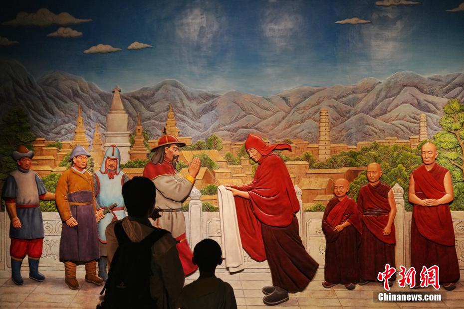 7月15日,在位于西藏拉薩的西藏博物館,觀眾參觀“涼州會(huì)談”場(chǎng)景,“涼州會(huì)談”結(jié)束了吐蕃地方政權(quán)對(duì)西藏的長(zhǎng)期分治局面,順應(yīng)了國(guó)家統(tǒng)一的歷史潮流。據(jù)了解,西藏博物館設(shè)有基本陳列《雪域長(zhǎng)歌—西藏歷史文化展》《離太陽(yáng)最近的人—西藏民俗文化展》,充分展示西藏地區(qū)歷史發(fā)展進(jìn)程與文化面貌。中新社記者 張祥毅 攝