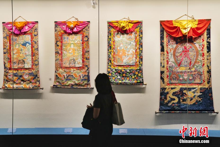 7月15日,在位于西藏拉薩的西藏博物館,觀眾品鑒唐卡藝術(shù)。據(jù)了解,西藏博物館設(shè)有基本陳列《雪域長(zhǎng)歌—西藏歷史文化展》《離太陽(yáng)最近的人—西藏民俗文化展》,充分展示西藏地區(qū)歷史發(fā)展進(jìn)程與文化面貌。中新社記者 張祥毅 攝