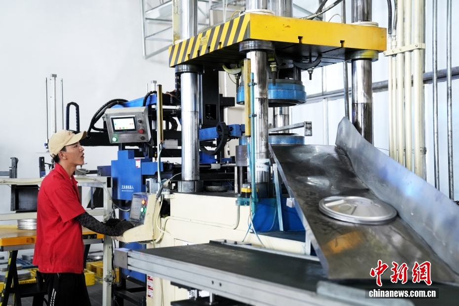 7月17日,在位于拉薩的西藏尚廚炊具科技有限公司,工人使用機(jī)械生產(chǎn)高壓鍋鍋蓋。受西藏海拔高氣壓低的影響,長期以來西藏民眾面臨飲用水沸點(diǎn)低、食物難以煮熟、普通高壓鍋不適用高原環(huán)境等問題的困擾。2022年,該公司作為首家高原地區(qū)多功能烹飪炊具生產(chǎn)企業(yè)落地拉薩,研發(fā)、生產(chǎn)、銷售高原多功能炊具產(chǎn)品,促進(jìn)西藏經(jīng)濟(jì)發(fā)展的同時(shí)也緩解了西藏民眾的飲食困擾。中新社記者 張祥毅 攝