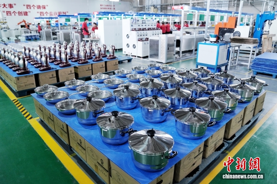 7月17日,在位于拉薩的西藏尚廚炊具科技有限公司,生產(chǎn)車間擺放的炊具產(chǎn)品。受西藏海拔高氣壓低的影響,長期以來西藏民眾面臨飲用水沸點(diǎn)低、食物難以煮熟、普通高壓鍋不適用高原環(huán)境等問題的困擾。2022年,該公司作為首家高原地區(qū)多功能烹飪炊具生產(chǎn)企業(yè)落地拉薩,研發(fā)、生產(chǎn)、銷售高原多功能炊具產(chǎn)品,促進(jìn)西藏經(jīng)濟(jì)發(fā)展的同時(shí)也緩解了西藏民眾的飲食困擾。中新社記者 張祥毅 攝