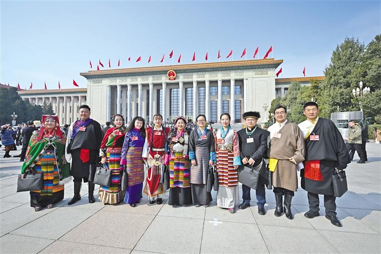 圖為十四屆全國(guó)人大三次會(huì)議期間,與會(huì)西藏的全國(guó)人大代表在人民大會(huì)堂前合影留念(2025年3月攝)。