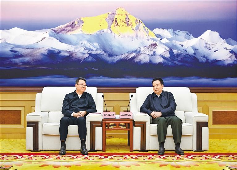 王君正代表自治區(qū)黨委、政府向郭元強(qiáng)一行表示歡迎,并簡要介紹了西藏經(jīng)濟(jì)社會發(fā)展情況。他說,黨的十八大以來,以習(xí)近平同志為核心的黨中央高度重視西藏工作,習(xí)近平總書記多次作出重要指示批示,確立了新時(shí)代黨的治藏方略,明確了“穩(wěn)定、發(fā)展、生態(tài)、強(qiáng)邊”四件大事,提出了長治久安和高質(zhì)量發(fā)展的戰(zhàn)略目標(biāo),為我們做好西藏工作指明了前進(jìn)方向、提供了根本遵循。自治區(qū)黨委團(tuán)結(jié)帶領(lǐng)全區(qū)各族干部群眾,深入貫徹習(xí)近平總書記關(guān)于西藏工作的重要指示和新時(shí)代黨的治藏方略,持之以恒抓好“四件大事”落實(shí),推動各項(xiàng)事業(yè)不斷取得新成效。