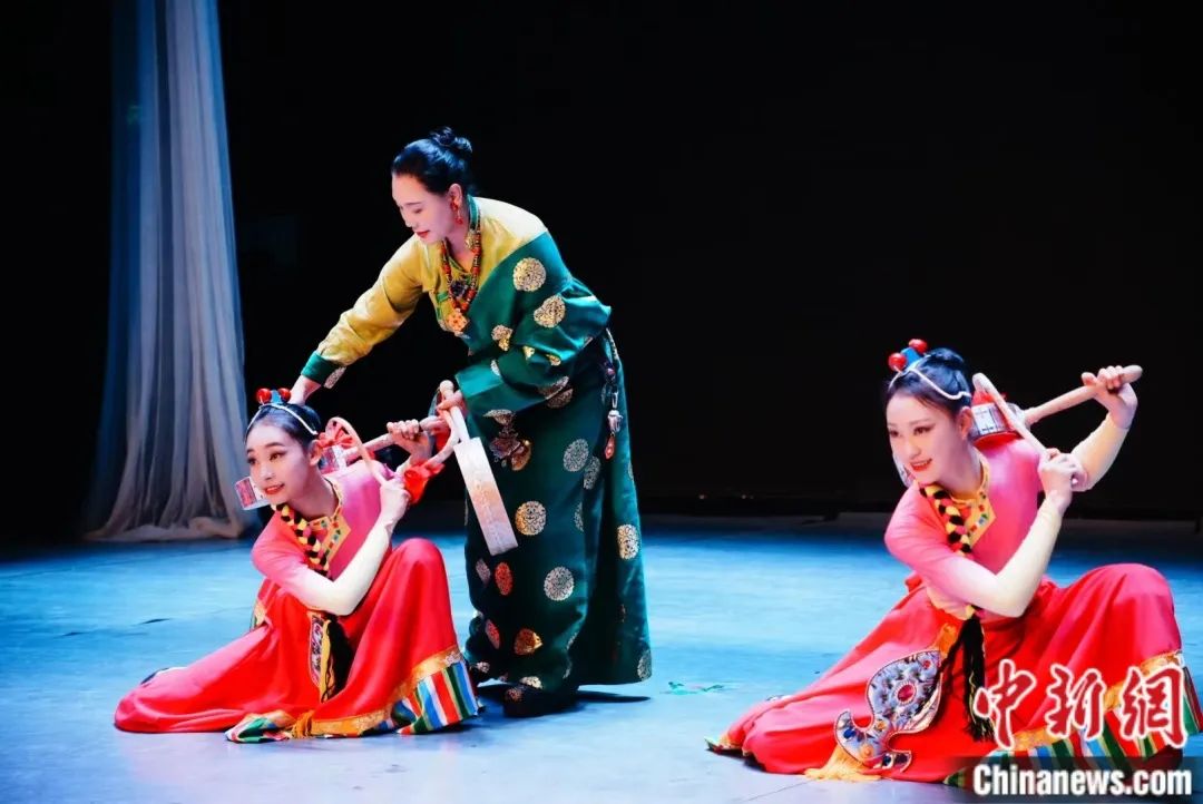 圖為2024年,西藏大學(xué)榮獲全國第七屆大學(xué)生藝術(shù)展演群舞組“一等獎”及“最佳創(chuàng)作獎”的舞蹈《甲諧·古韻》表演現(xiàn)場。西藏大學(xué)供圖