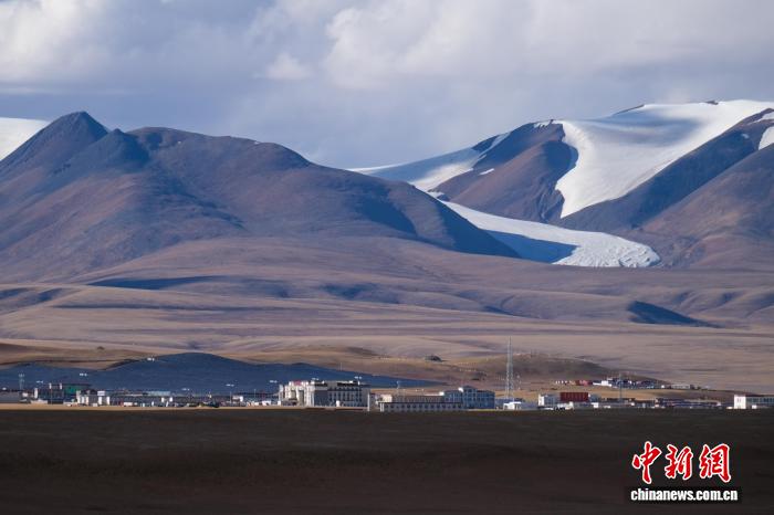 圖為2024年10月2日,遠(yuǎn)眺西藏自治區(qū)那曲市雙湖縣城和縣城附近的冰川。江飛波 攝