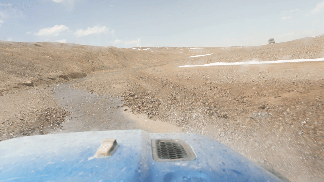 路面逐漸從“蜿蜒崎嶇的溪流”變成“波濤洶涌的大?!保?strong>越野車?yán)锖孟褚粋€(gè)迪斯科舞池,每件東西都像被賦予了生命一般蹦蹦跳跳,伴隨著我們這些乘客的驚呼,連同引擎的轟鳴一起,被揉碎在無(wú)邊荒原的呼嘯風(fēng)聲中。