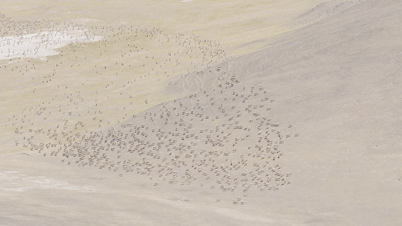 羌塘國(guó)家級(jí)自然保護(hù)區(qū)中正在遷徙的龐大藏羚羊群。