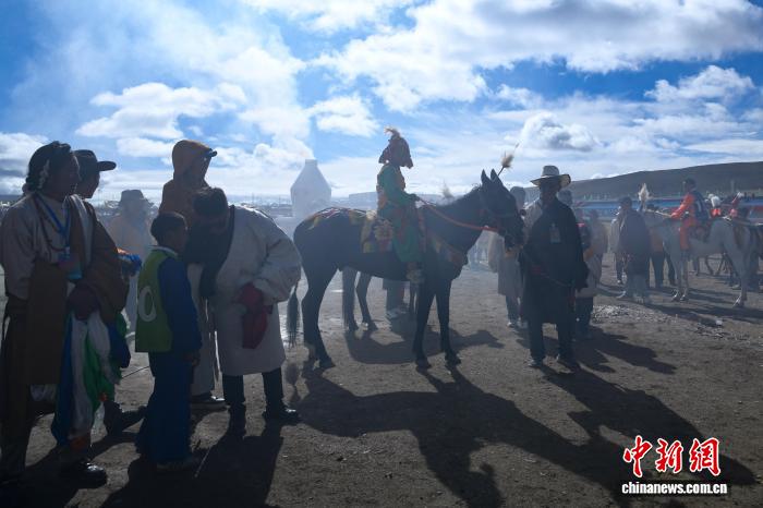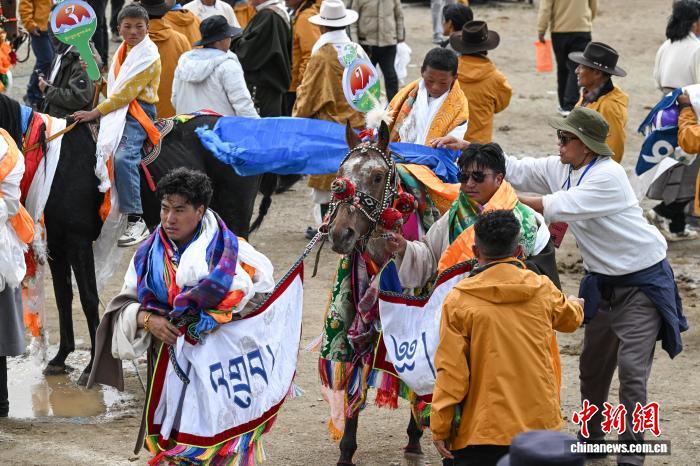 圖為參賽選手準(zhǔn)備參加恰青賽馬節(jié)傳統(tǒng)大跑決賽。中新社記者 貢嘎來松 攝