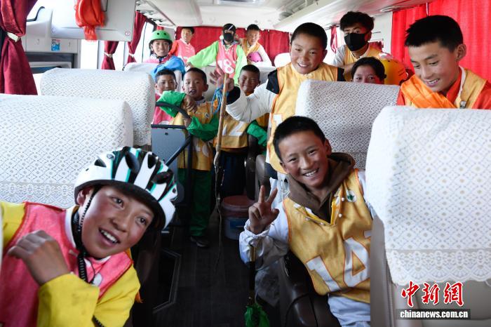 圖為參賽騎手乘大巴前往起跑點(diǎn)。中新社記者 貢嘎來松 攝