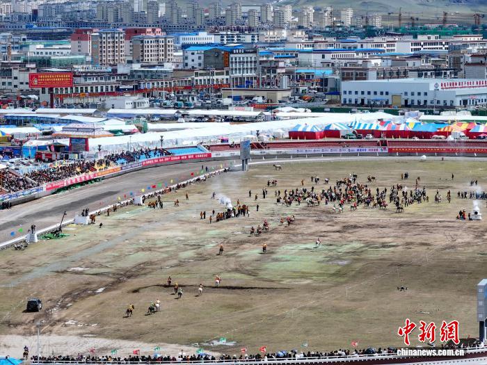 圖為恰青賽馬節(jié)傳統(tǒng)大跑決賽現(xiàn)場(無人機(jī)照片)。中新社記者 貢嘎來松 攝