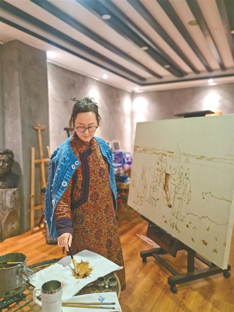 推開羽芊位于拉薩東郊的家門,目光首先被三面通體書墻溫柔捕獲。文學、歷史、自然、科學,上萬冊藏書如沉默的智者靜立。書柜一角,整齊擺放著《藏婚》《西藏生死戀》《金城公主》等十五部藏地題材作品,每一本都浸潤著高原陽光的暖意。四處打量,書桌旁立著一個畫架,未完成的油畫上,藏北草原斑斕秋色正流淌在畫布上,透露出她對光影與色彩天生的敏銳——這份未被刻意強調(diào)的油畫天賦,悄然浸染著她的文學世界。