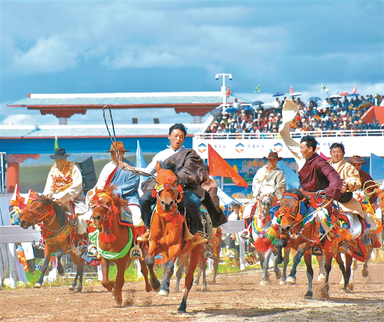 格薩爾賽馬場上,人群依然歡騰,掌聲、喝彩聲此起彼伏。馬蹄聲碎,揚(yáng)起歲月的塵煙與時(shí)代的新輝;長調(diào)悠遠(yuǎn),掠過蒼茫的草場與無垠的晴空。人們以賽馬為媒,以歌舞為言,在這片高原相遇、相擁,傳遞著來自遠(yuǎn)古的熱情與今日的豪邁。這一刻,羌塘不再遙遠(yuǎn),傳統(tǒng)從未老去,夢想生生不息。